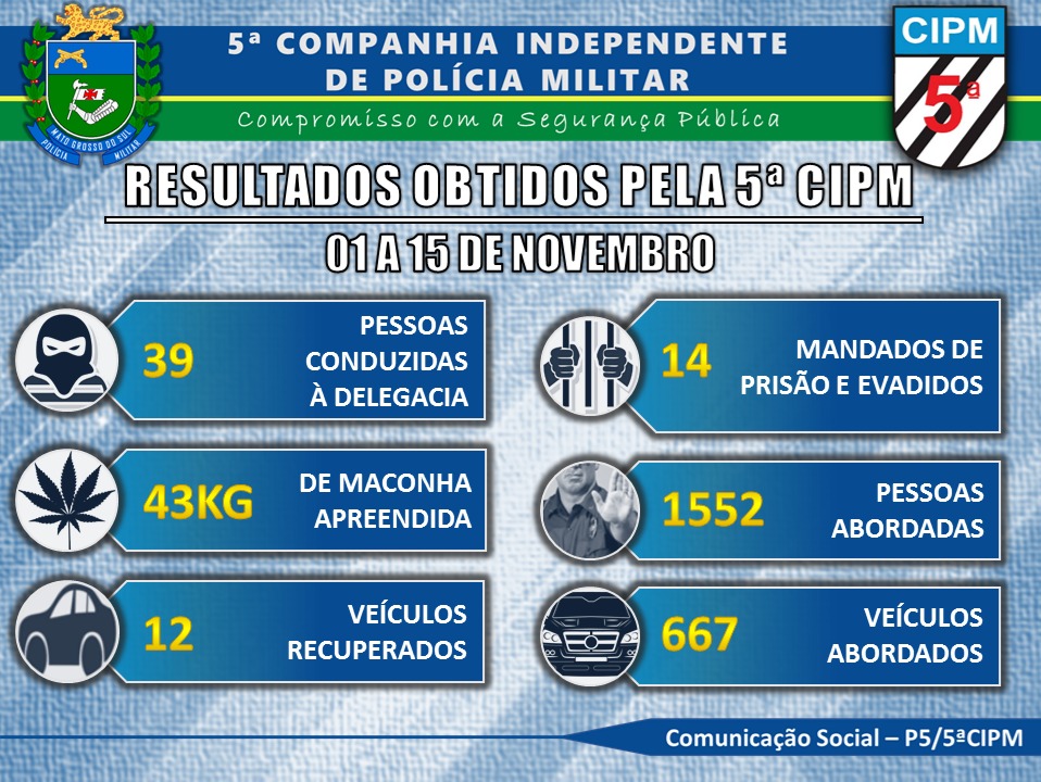 Campo Grande (MS) – No feriadão de Proclamação da República, as guarnições da 5ª Companhia Independente de Polícia Militar, durante policiamento ostensivo na Região do Imbirussu, capturaram indivíduos que estavam a pedido da Justiça. Ainda na