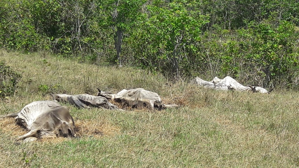 Campo Grande (MS) – Policiais Militares Ambientais de Campo Grande receberam denúncias de possíveis maus-tratos a animais em uma fazenda no município de Terenos, onde teriam ocorrido várias mortes de gado por falta de cuidados com alimento e água. A
