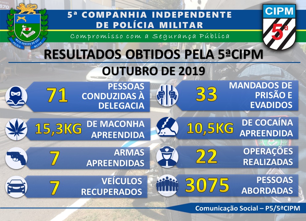 Campo Grande (MS) – A 5ª Companhia Independente de Polícia Militar, responsável pelo policiamento na região urbana do Imbirussu, concluiu o mês de Outubro com uma média de mais de 01 cumprimento de Mandado de Prisão por dia. Durante esse período