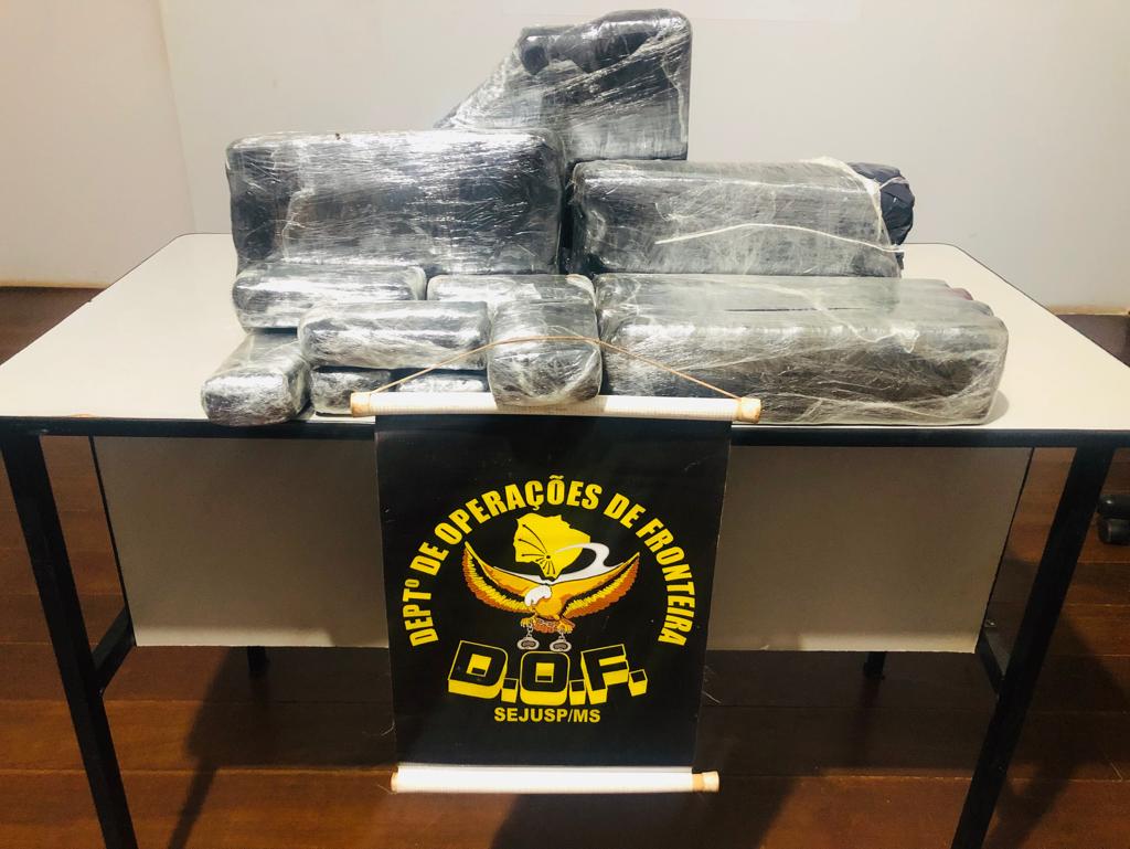Caarapó, 20 de setembro – Policiais do Departamento de Operações de Fronteira (DOF) prenderam, na madrugada desta sexta-feira, um homem de 27 anos de idade que viajava em um ônibus com uma bagagem de mão contendo 12 volumes prensados de uma substância