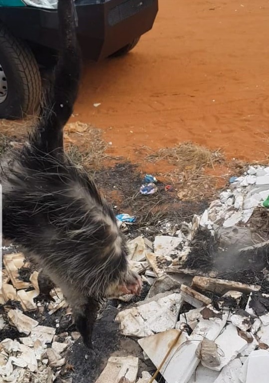 Campo Grande (MS) – Policiais Militares Ambientais de Campo Grande foram acionados hoje (20) no fim da manhã, por moradores do bairro Rita Vieira, em virtude de que uma família de gambás estaria lutando para escapar de um incêndio em um terreno