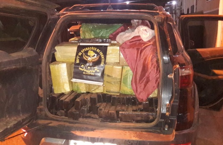 Iguatemi, 9 de agosto – Policiais do Departamento de Operações de Fronteira (DOF) apreenderam, na manhã desta segunda-feira, um veículo Ford Ecosport de cor preta carregado com 33 fardos de uma substância entorpecente, aparentemente maconha, com peso