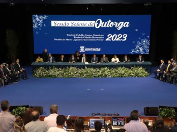 Campo Grande (MS) – O Chefe do Estado-Maior-Geral da PMMS, Coronel PM Nivaldo de Pádua Mello e a Presidente do Fundo de Assistência Feminina da PMMS, Andréia Lutz Cabral Garnes, receberam na noite de ontem (24/08), o Título de Cidadão