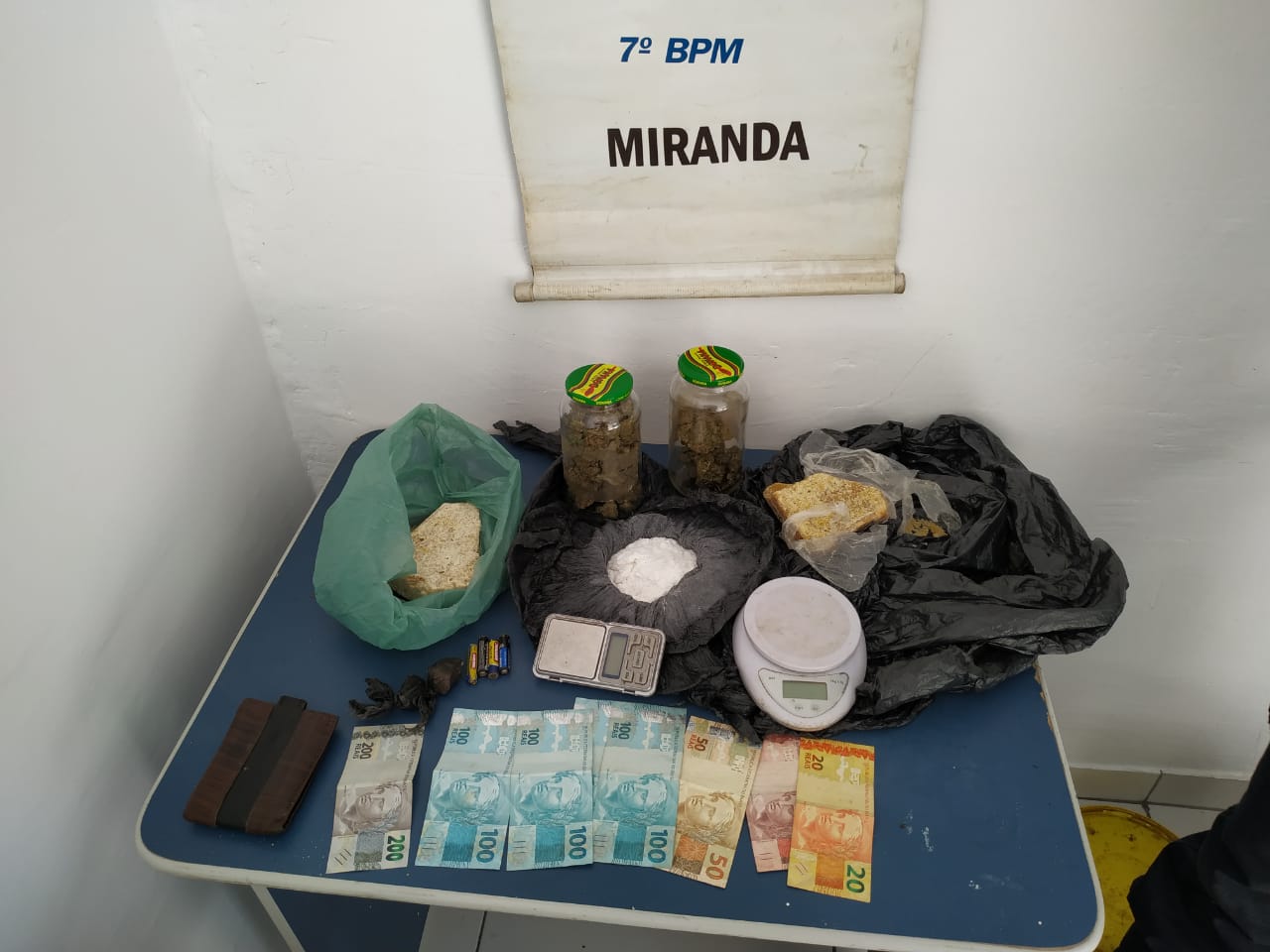 Miranda(MS) -Nessa quinta-feira (26/05), a equipe de Rádio Patrulha do 7º batalhão de Polícia Militar prendeu um traficante de entorpecentes, ele escondia drogas na mata às margens do Rio Miranda. Por volta das 09h30 a equipe policial recebeu uma