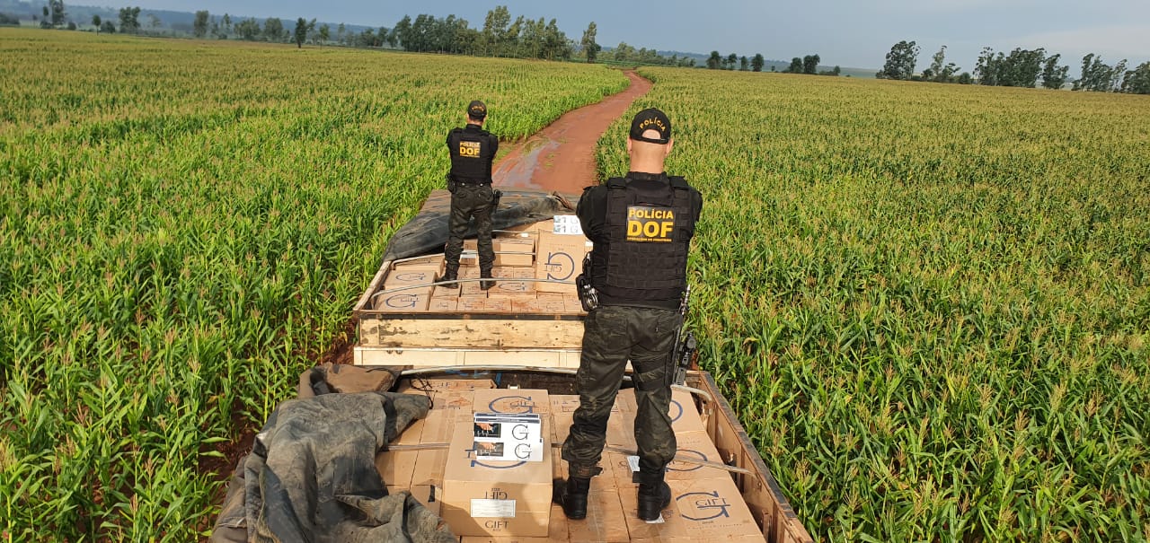 Policiais do DOF (Departamento de Operações de Fronteira) apreenderam no final da tarde desta terça-feira (11/05), uma carreta Iveco/Stralis carregada com cigarro contrabandeado do Paraguai, próximo à rodovia BR-487, na zona rural de Itaquiraí. Na