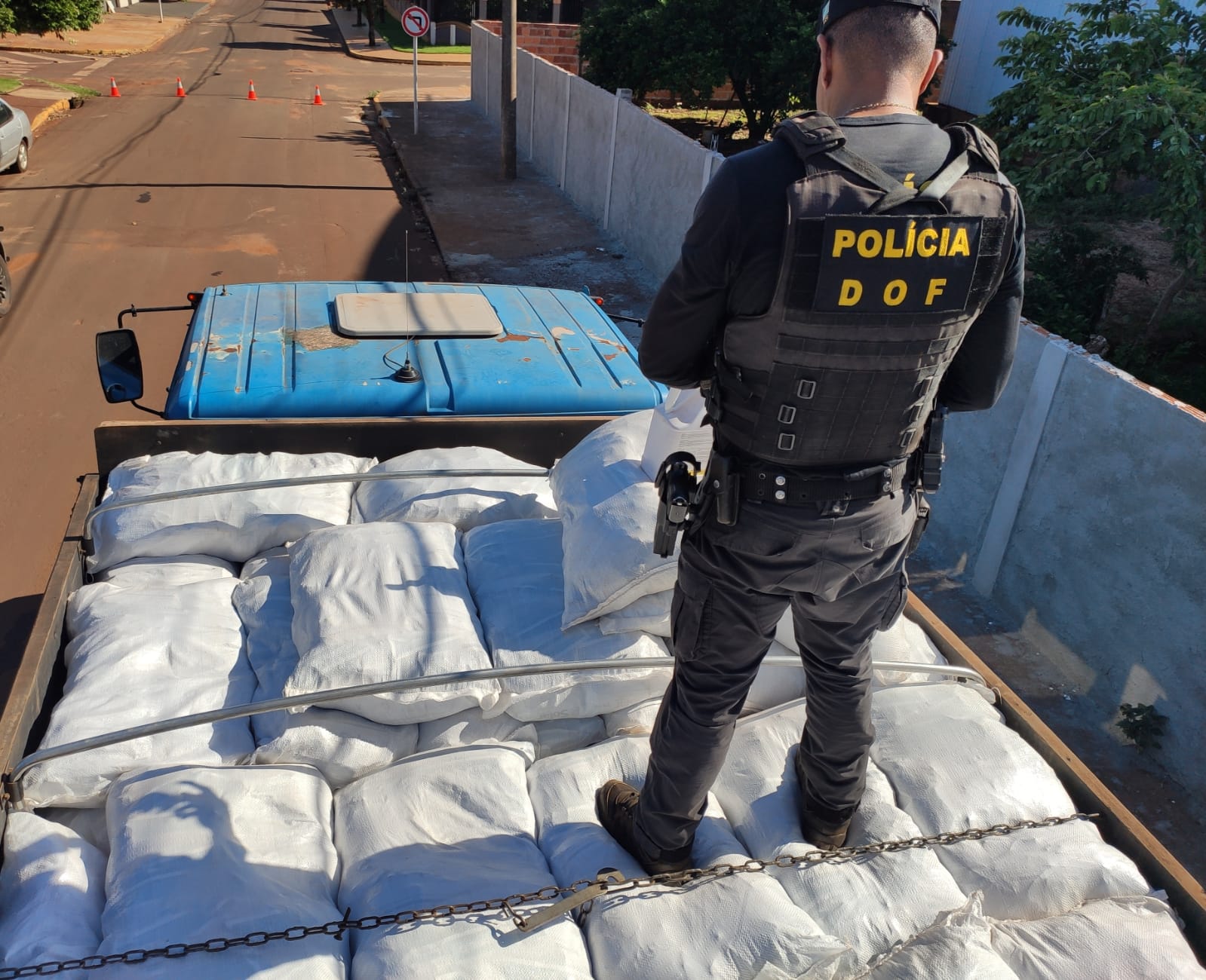 Dourados (MS), 07 de março – Policiais do Departamento de Operações de Fronteira (DOF) apreenderam, na manhã desta segunda-feira, um caminhão Mercedes-Benz, de cora azul, carregado com 3.536 quilos de defensivo agrícola e 5.980 litros do produto