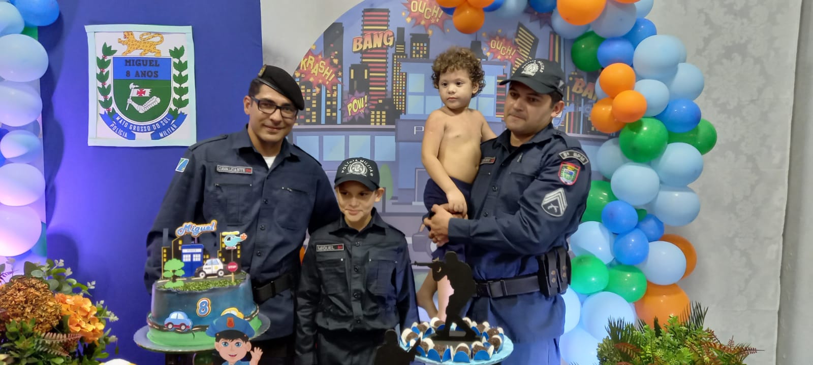 Coxim (MS): A Polícia Militar na noite de sábado (20/11), participou do aniversário do Miguel Rolon Barbosa Dias de apenas 8 anos que sonha ser policial em Pedro Gomes. O Miguel que sonha ser policial para proteger a sociedade teve uma grande surpresa no