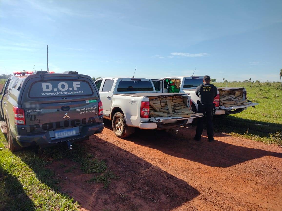 Dourados (MS), 14 de novembro – Policiais do Departamento de Operações de Fronteira (DOF) apreenderam, na manhã de ontem, sábado, duas camionetes carregadas com 3.483 Kg de maconha distribuídos em grande quantidade de volumes prensados. A ação