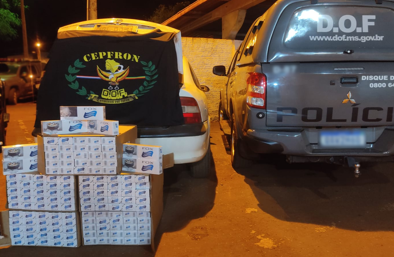 Dourados (MS), 30 de novembro – Policiais militares do Departamento de Operações de Fronteira (DOF) apreenderam, na noite de ontem, um veículo GM Vectra de cor branca carregado com 250 pacotes de cigarros contrabandeados do Paraguai. A ação ocorreu em