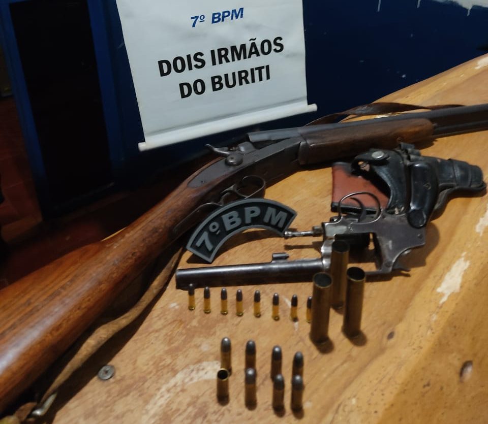 Aquidauana (MS) – Em atendimento a uma ocorrência de violência doméstica, equipe de Rádio Patrulha do distrito de Palmeiras tira duas armas irregulares de circulação. Por volta das 21h, um morador do distrito solicitou a presença da Polícia Militar