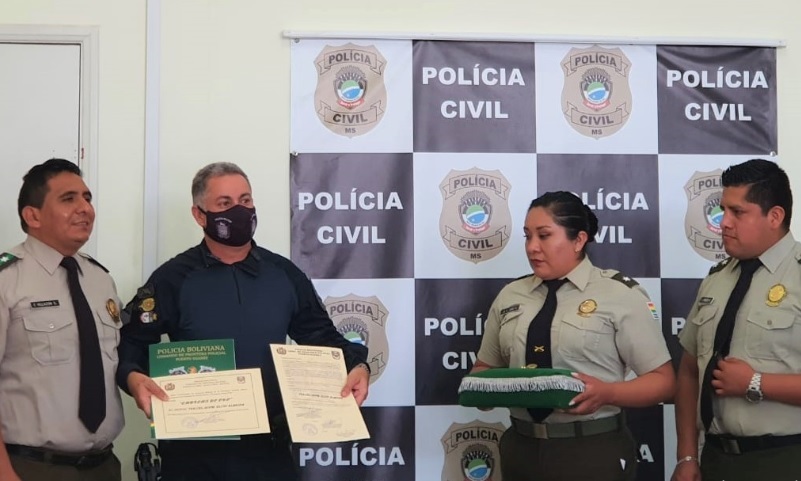 Corumbá (MS) No ato, o comandante do 6º Batalhão de Polícia Militar, Tenente Coronel Elcio Ameida, recebeu o “Emblema de Oro” do comando de fronteira da Polícia Portuária Suarez, Cnl. DESP. Fernando C Pelaez Sandalio, pelos serviços prestados a