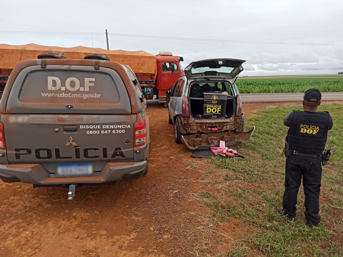 Amambai (MS) – Nesta quinta-feira (06.05), policiais do Departamento de Operações de Fronteira (DOF) apreenderam na tarde de ontem, um Fiat Idea carregado com 25 volumes prensados de pasta base de cocaína, com peso total de 27 quilos, que estavam