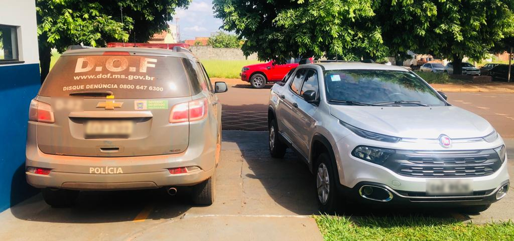 Maracaju (MS), 14 de abril – Policiais do Departamento de Operações de Fronteira (DOF) recuperaram, na manhã de hoje, o veículo Fiat Toro, de cor prata, tomado em assalta na noite anterior em Campo grande (MS). A ação ocorreu em virtude da Operação