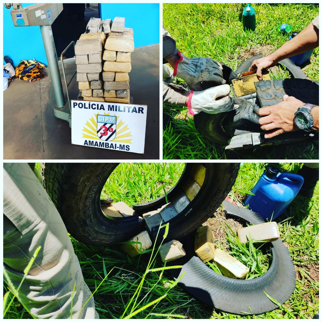 Amambai (MS) – Na tarde desta terça-feira (26) uma equipe de Rádio Patrulha da Polícia Militar prendeu três pessoas que transportavam maconha dentro dos pneus do veículo que usavam, em Amambai. Após denúncia anônima sobre um veículo suspeito, os