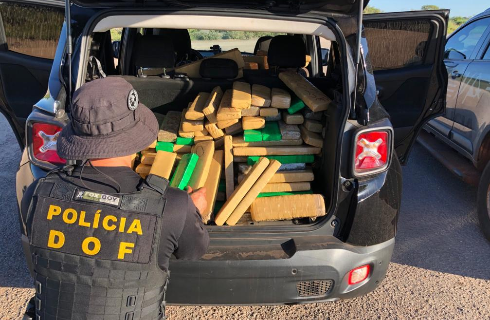 Bela Vista (MS), 10 de dezembro – Policiais do Departamento de Operações de Fronteira (DOF) apreenderam, na manhã de hoje, um veículo Jeep Renegade preto, com placas falsas, carregado com 531 volumes prensados de maconha, com peso total de 495,6 quilos.