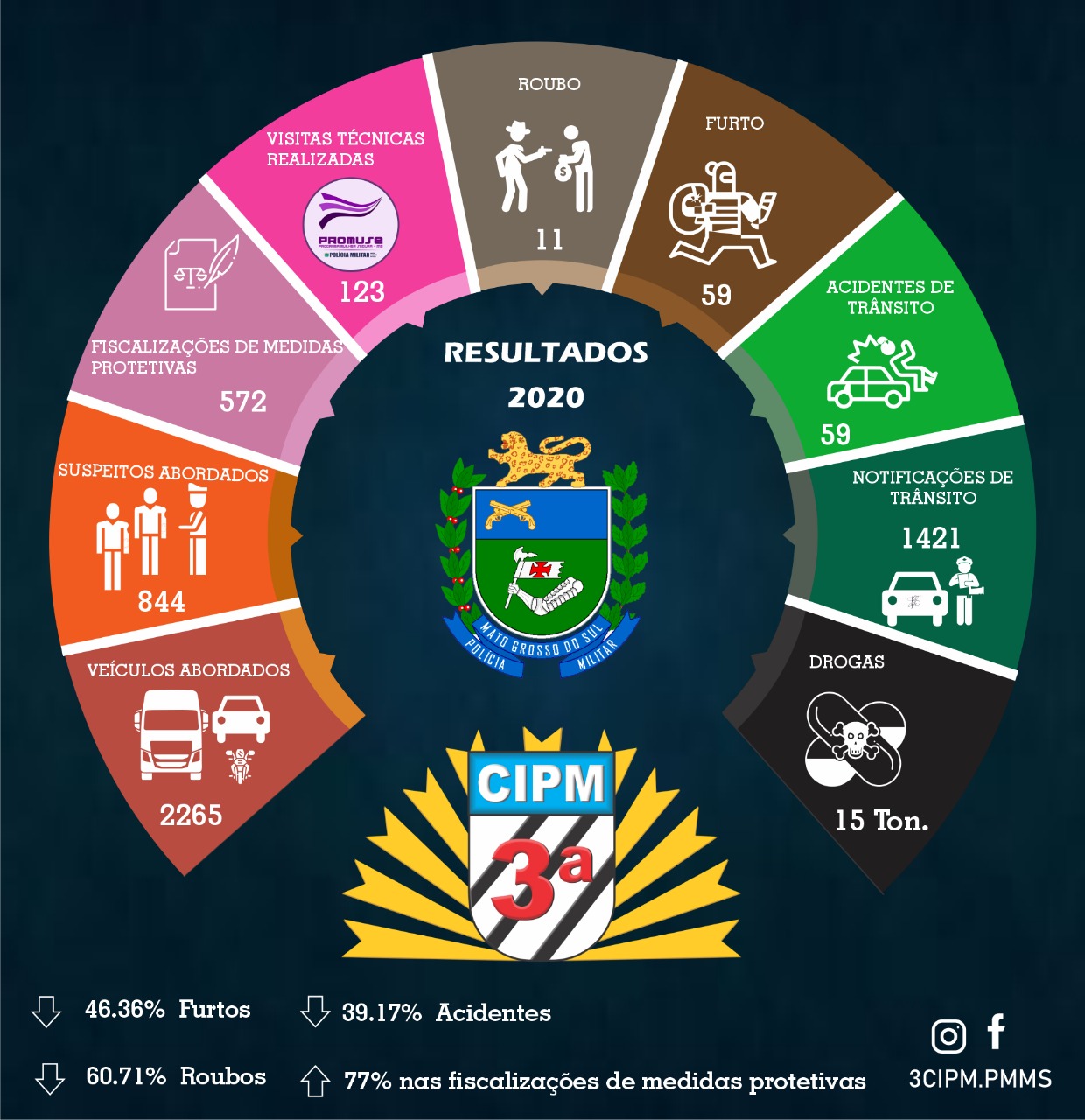 3ª CIPM – Nesta quinta-feira (17) a 3ª Companhia Independente de Polícia Militar, com sede em Amambai, e que é responsável também pelo policiamento de Coronel Sapucaia, Paranhos, Sete Quedas e Tacuru, divulgou os resultados do policiamento preventivo