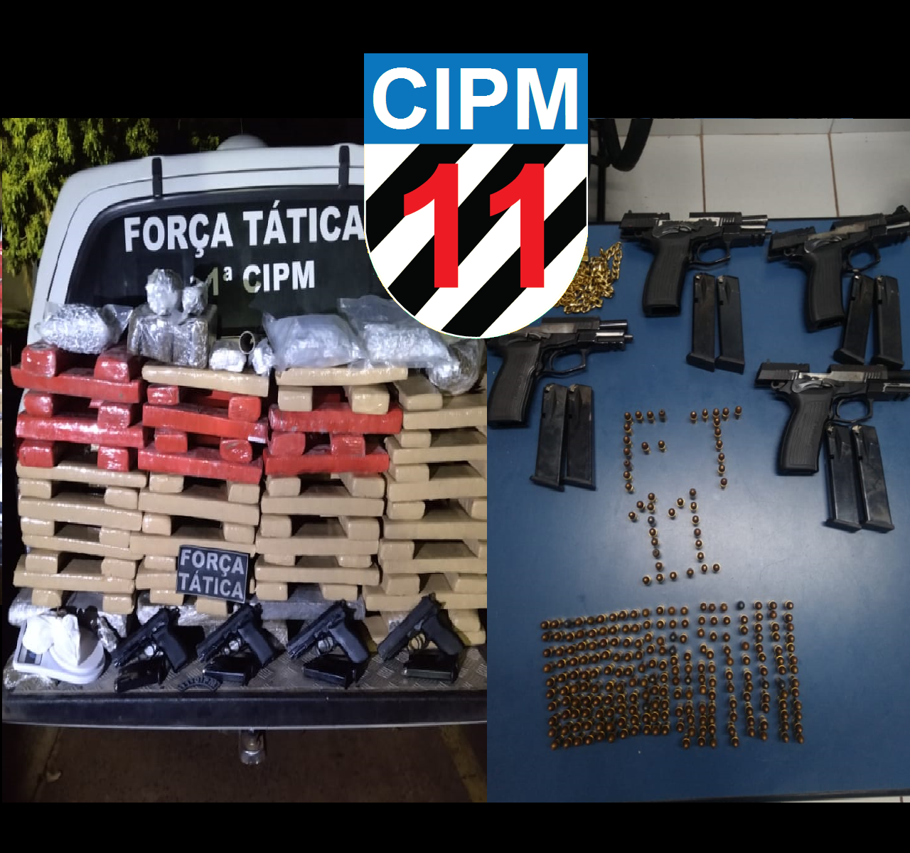 Campo Grande (MS) – Policiais Militares do pelotão da Força Tática 11ª Companhia Independente de Polícia Militar apreenderam na noite ontem (01/12), mais de 119kg de maconha, 4 pistolas com 8 carregadores e 259 munições, além de fugitivo de
