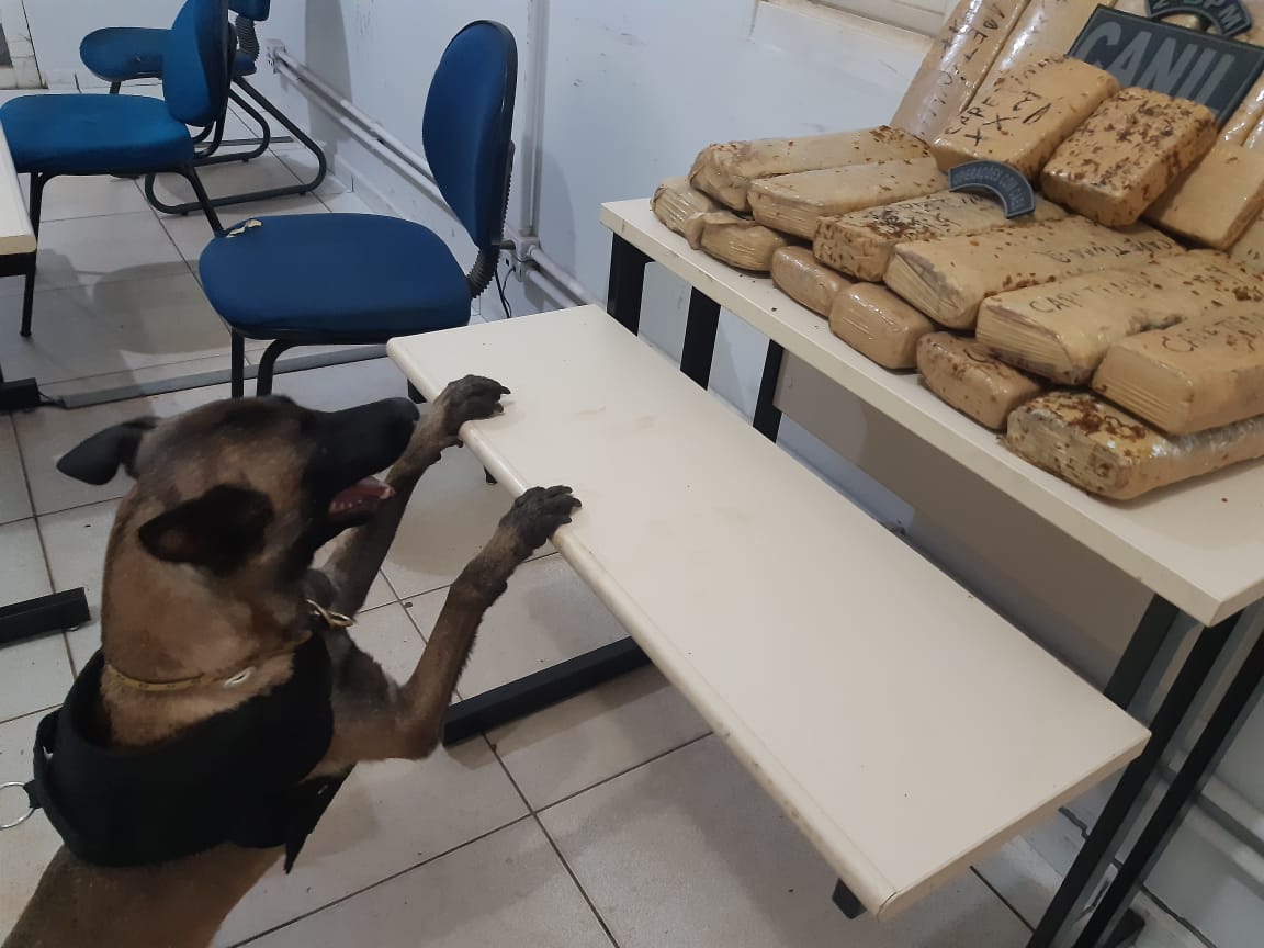 TRÊS LAGOAS (MS) – Na noite de sábado (7/11), policiais militares acompanhados do cão farejador K9 Mara apreenderam cerca de 20 quilos de maconha com um passageiro no Terminal Rodoviário de Três Lagoas. A equipe policial realiza fiscalização de