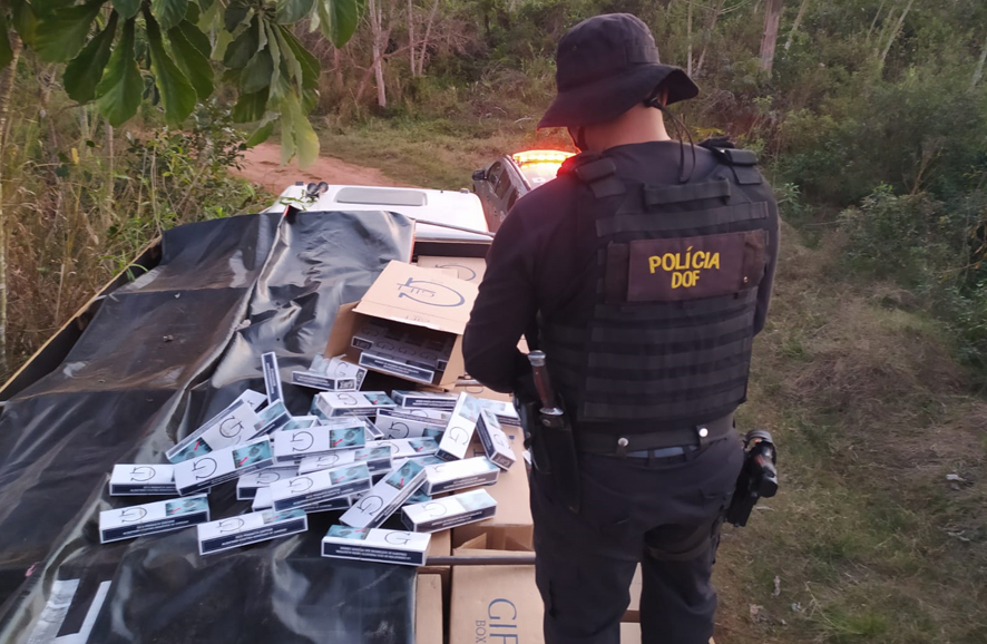 Itaquiraí (MS), 25 de agosto – Policiais Militares do Departamento de Operações de Fronteira (DOF) apreenderam na tarde de ontem, um caminhão Ford Cargo de cor branca carregado com 21.000 pacotes de cigarros contrabandeados do Paraguai. A ação ocorreu
