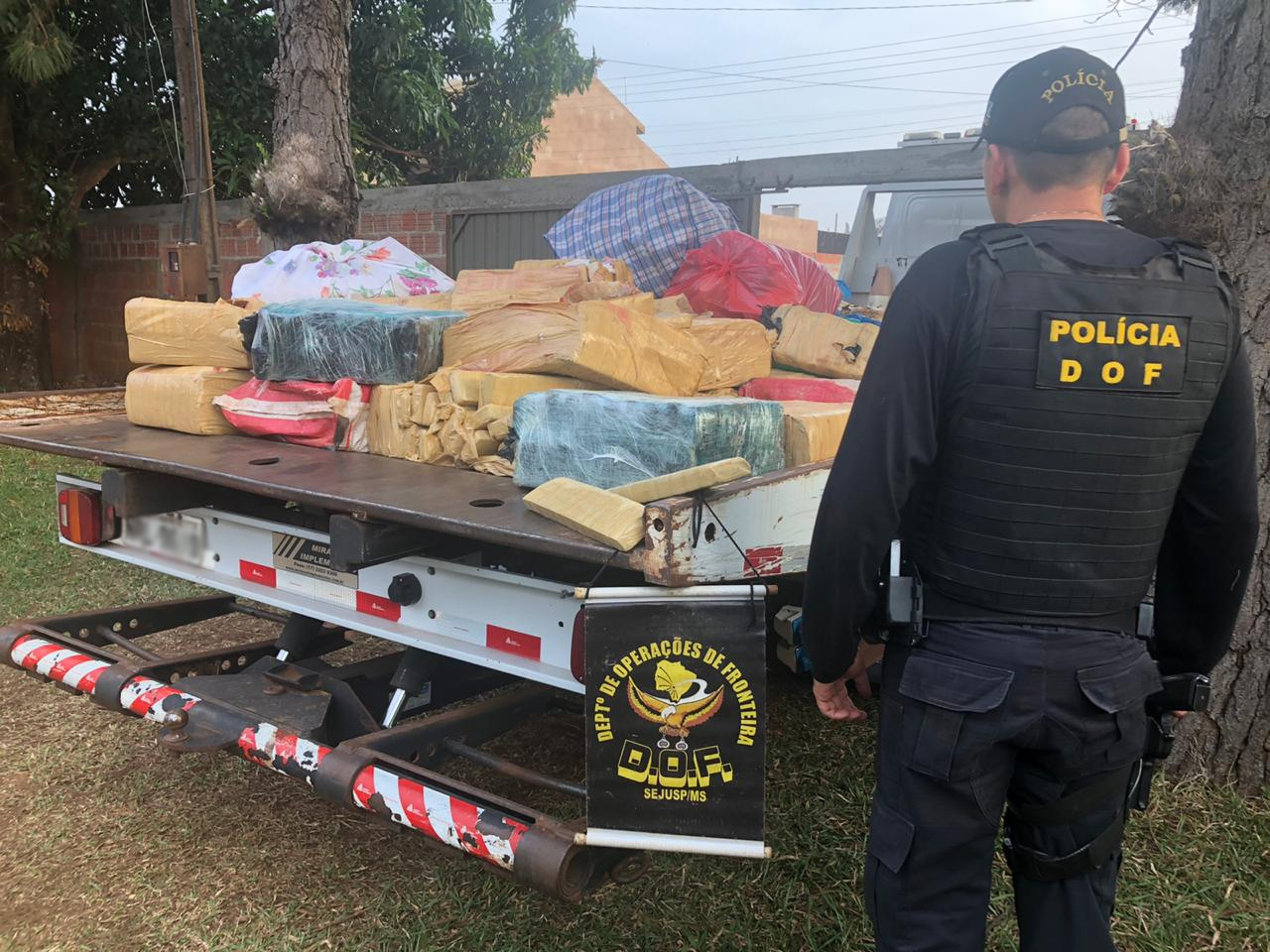 Maracaju (MS), 26 de agosto – Policiais Militares do Departamento de Operações de Fronteira (DOF) apreenderam na tarde de ontem, um caminhão Bitrem carregados com 33,3 toneladas de maconha, em fardos prensados. Foi a maior apreensão da história do