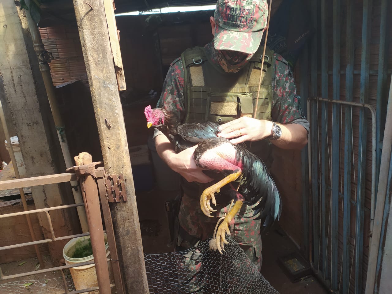 Campo Grande (MS) – Policiais Militares Ambientais de Campo Grande e o IBAMA receberam denúncias, versando sobre uma residência onde funcionaria uma rinha de galos no bairro Talismã e foram ao local ontem (13) no final da manhã. No momento da chegada