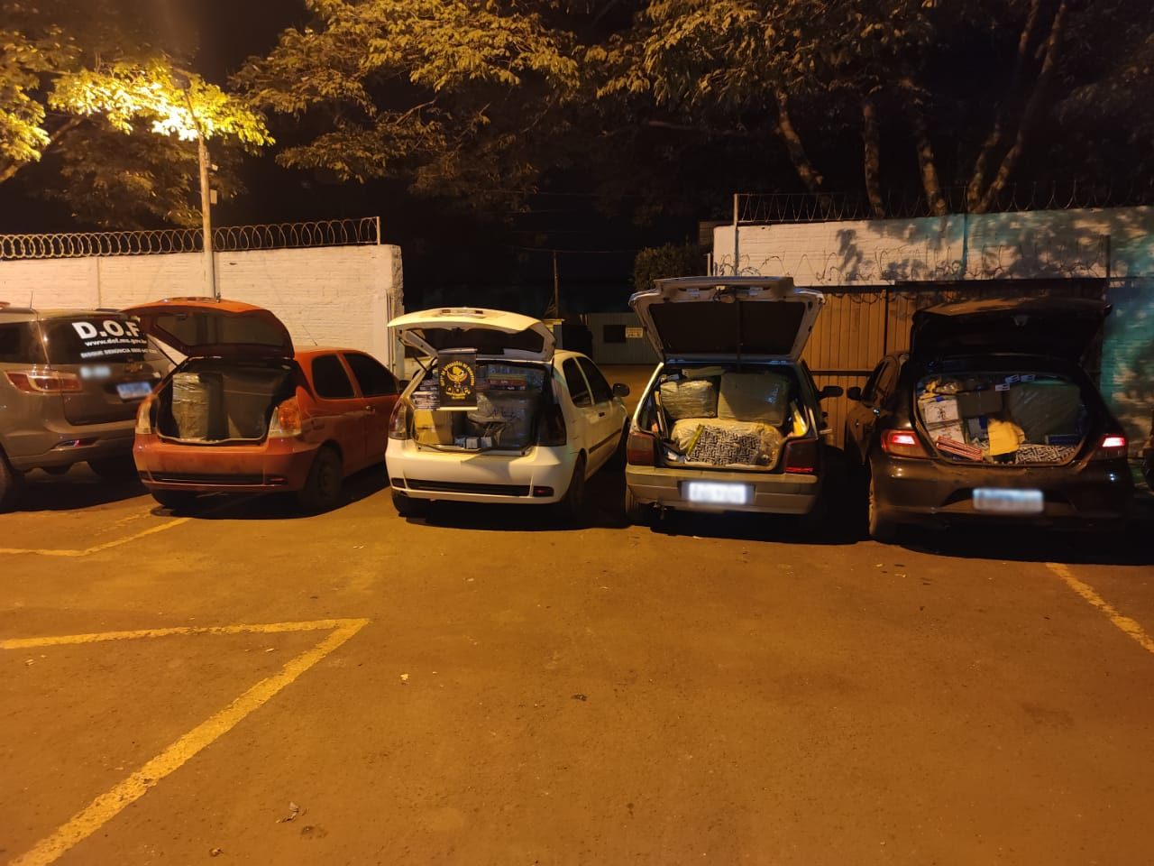 Ponta Porã (MS), 11 de agosto –Policiais Militares do Departamento de Operações de Fronteira (DOF) apreenderam na noite de ontem, quatro veículos (Fiat Palio, Fiat Uno, VW Gol e Fiat Palio) carregados com produtos do Paraguai sem a devida documentação