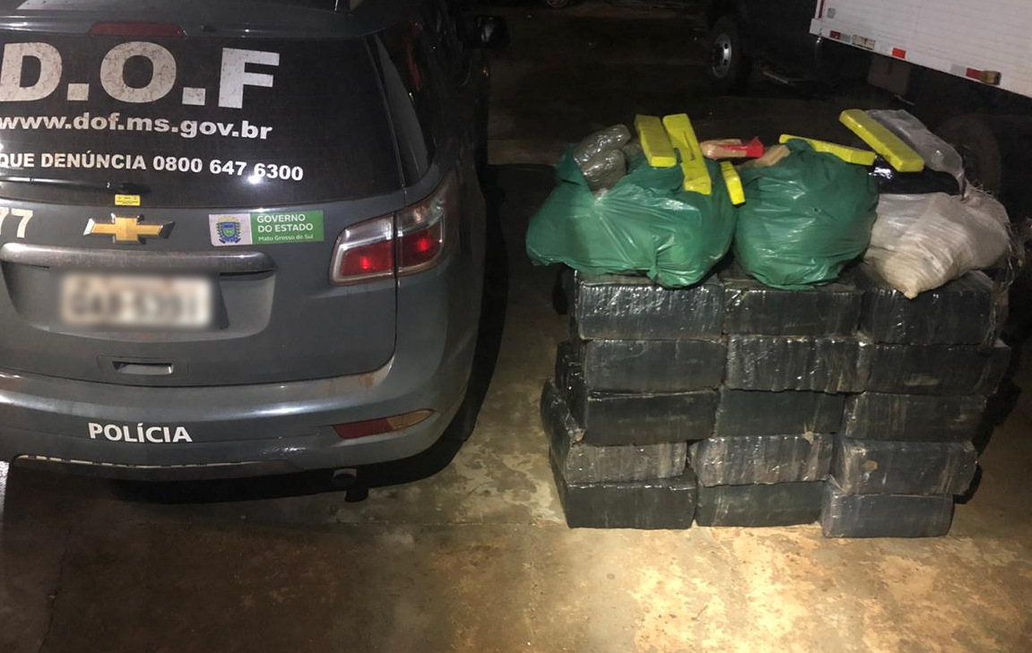 Amambai (MS), 12 de agosto – Policiais Militares do Departamento de Operações de Fronteira (DOF) apreenderam, na manhã de ontem, um veículo VW Golf carregado com 16 fardos de maconha, com peso de 433 quilos, mais 22,1 Kg de Skank e 1,8 Kg de uma