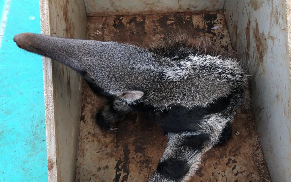 Campo Grande – A Polícia Militar Ambiental de Campo Grande foi acionada por um morador do bairro Jardim Anache, para recolher um filhote de tamanduá-bandeira ontem (10). Segundo o comunicante, o animal apareceu andando pela calçada de sua residência e