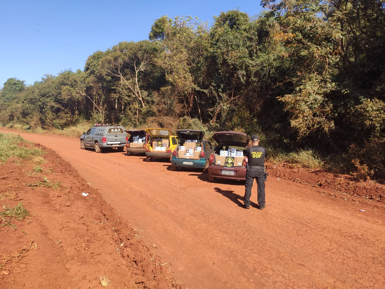 Laguna Carapã (MS), 7 de agosto – Policiais Militares do Departamento de Operações de Fronteira (DOF) apreenderam, na manhã desta sexta-feira, quatro veículos carregados com 1.595 pacotes de cigarros contrabandeados do Paraguai. A ação ocorreu em