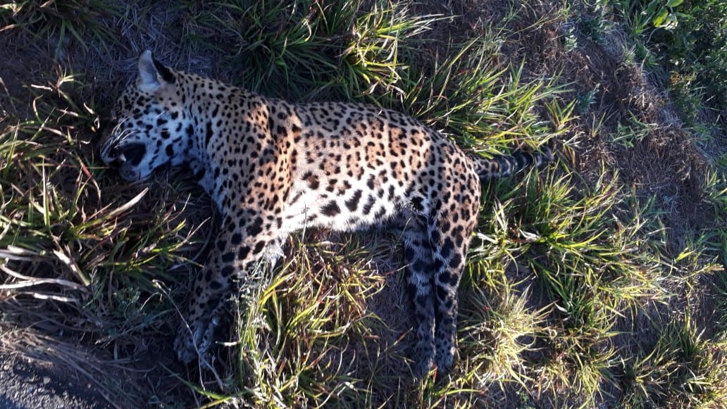Campo Grande (MS) – Depois de informados por um usuário da rodovia MS 332 hoje (7) no início da manhã, sobre uma onça-pintada que teria sido atropelada, Policiais Militares Ambientais de Miranda deslocaram-se rapidamente e localizaram o animal, a 2 km