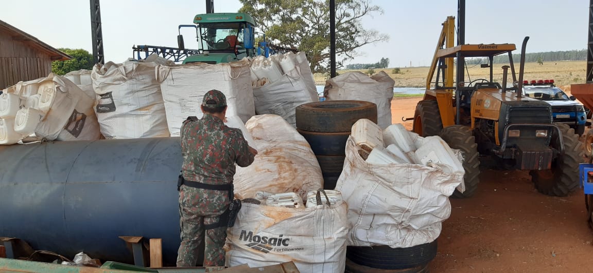 Campo Grande (MS) – Policiais Militares Ambientais de Mundo Novo realizavam fiscalização ambiental nas propriedades rurais do município de Paranhos e em vistoria em uma fazenda localizaram armazenamento ilegal de produtos perigosos, com