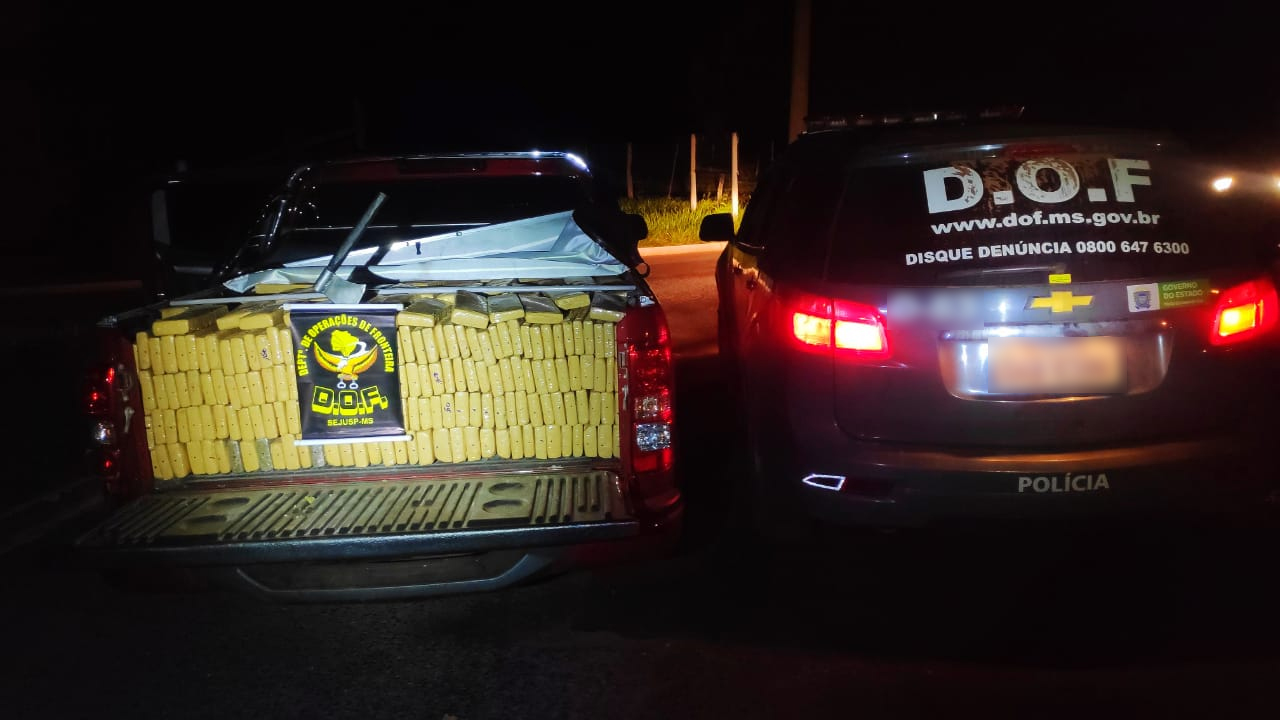 Bela Vista (MS), 26 de julho – Policiais Militares do Departamento de Operações de Fronteira (DOF) recuperaram na noite de ontem uma camionete S10 de cor vermelha, com placas falsas de Campo Grande (MS) carregada com 1.110,10 quilos de maconha. A ação