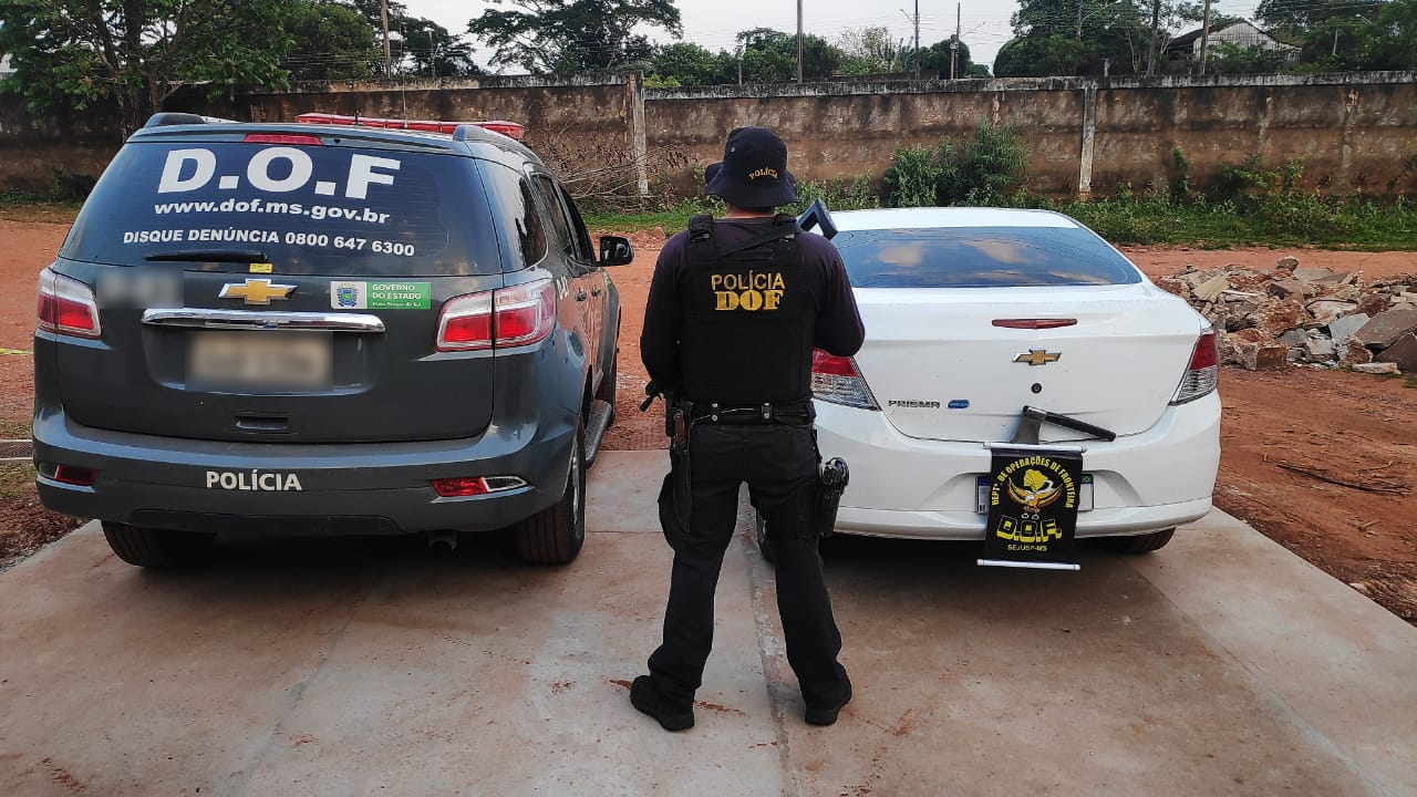Bela Vista (MS), 28 de julho – Policiais Militares do Departamento de Operações de Fronteira (DOF) recuperaram na manhã desta terça-feira um veículo Chevrolet Prisma Joy branco com placas falsas e registro de roubo/furto. A ação ocorreu em virtude da
