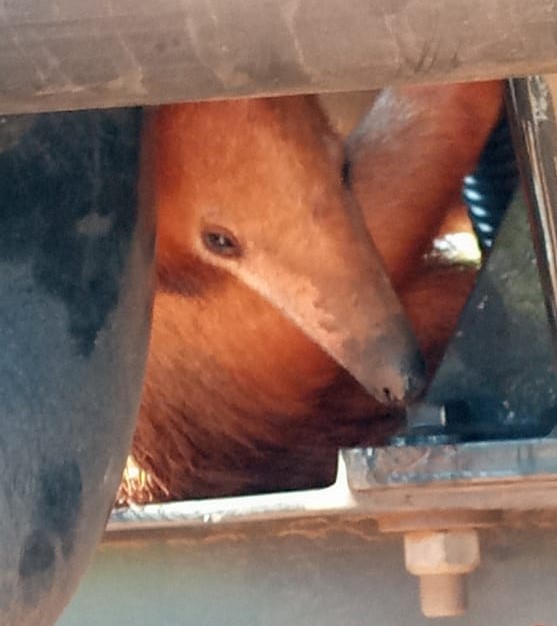 Campo Grande (MS) – Policiais Militares Ambientais de Campo Grande capturaram hoje (13) no início da tarde, um animal silvestre da espécie Tamandua tetradactyla (Tamanduá-mirim) na Capital. Um caminhoneiro acionou a PMA, informando que o animal se