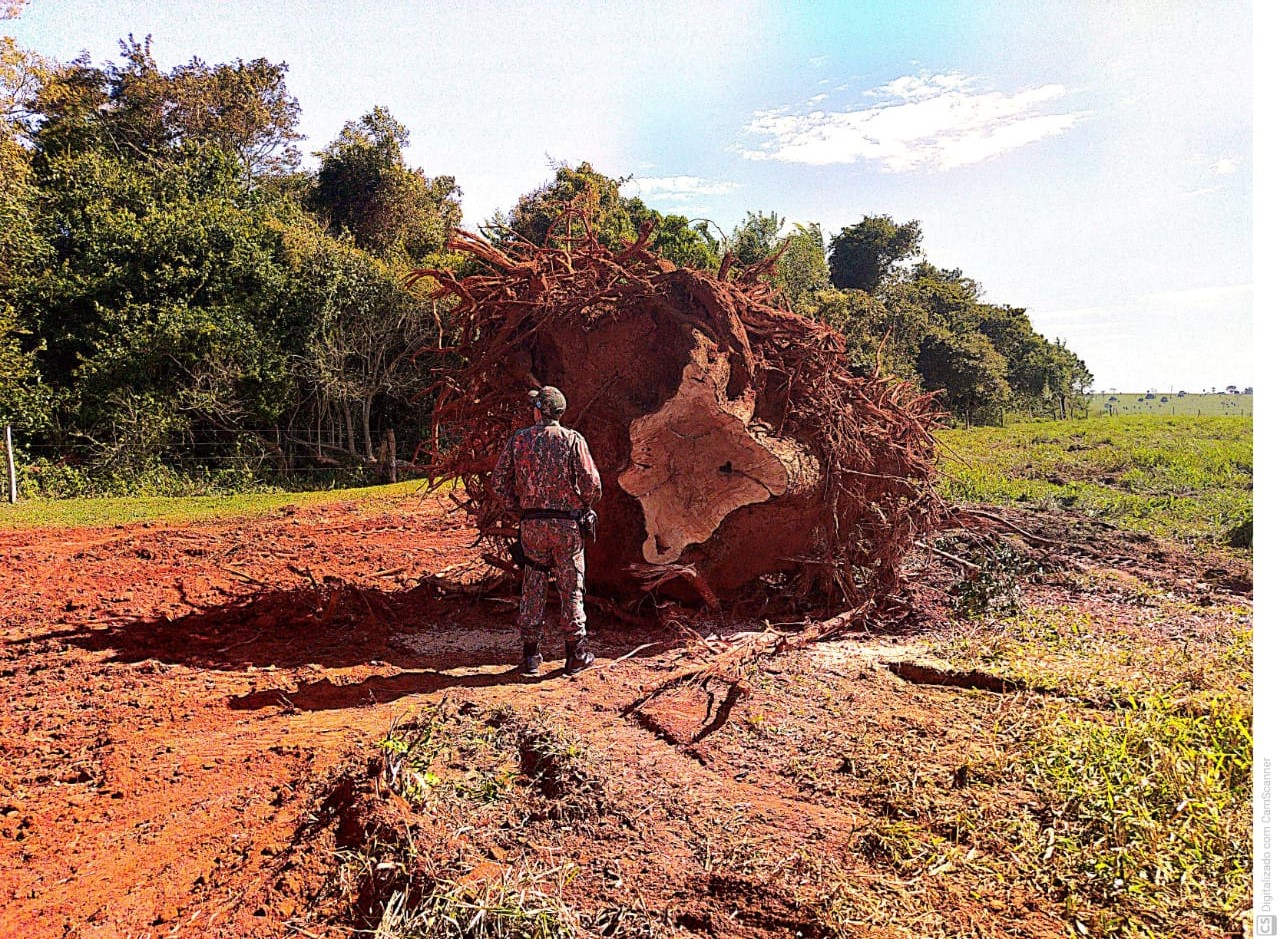 Campo Grande (MS) – Durante fiscalização ambiental nas propriedades rurais do município de Tacuru, Policiais Militares Ambientais de Mundo Novo autuaram hoje (14) um arrendatário de uma propriedade rural, por crime ambiental de extração de árvores de