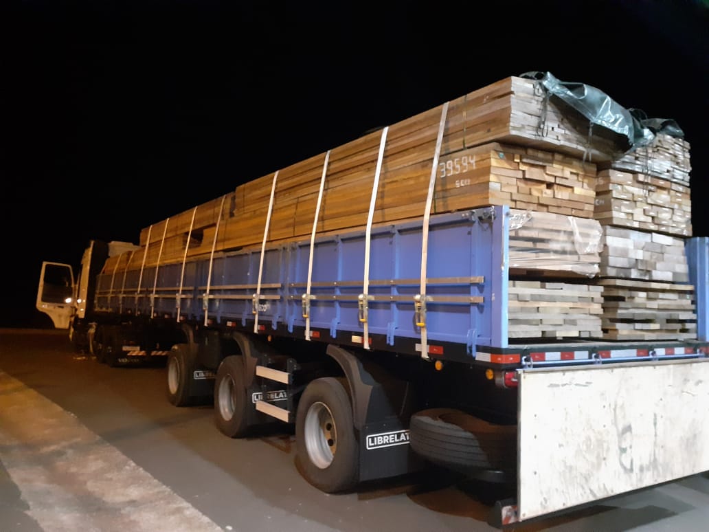 Campo Grande (MS) – Policiais Militares Ambientais de Mundo Novo deslocaram-se ontem (20) às 23h00, ao município de Eldorado, ao serem acionados pela Polícia Rodoviária Federal (PRF) que reteve um veículo tractor com carreta carregada de madeira