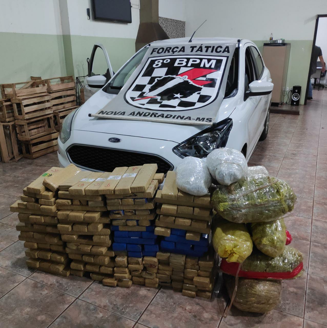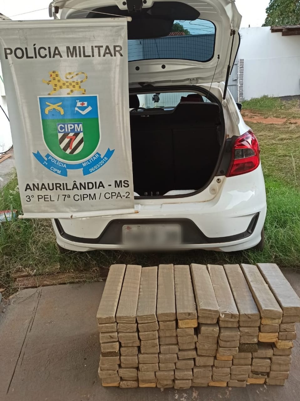Anaurilândia (MS) – Na tarde de terça-feira (05/05), a guarnição da Polícia Militar em Anaurilândia apreendeu um veículo carregado com mais de 100 (cem) quilos de maconha e prendeu um casal pelo crime de tráfico de drogas. Os policiais
