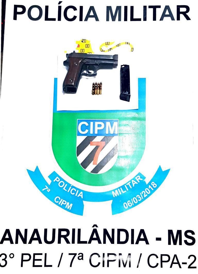 Anaurilândia (MS) – Por volta das 17:00h de terça-feira (24/03), a guarnição da Polícia Militar em Anaurilândia prendeu um homem de 47 anos pelo crime de porte ilegal de arma de fogo. A guarnição foi acionada via 190, onde o denunciante, um