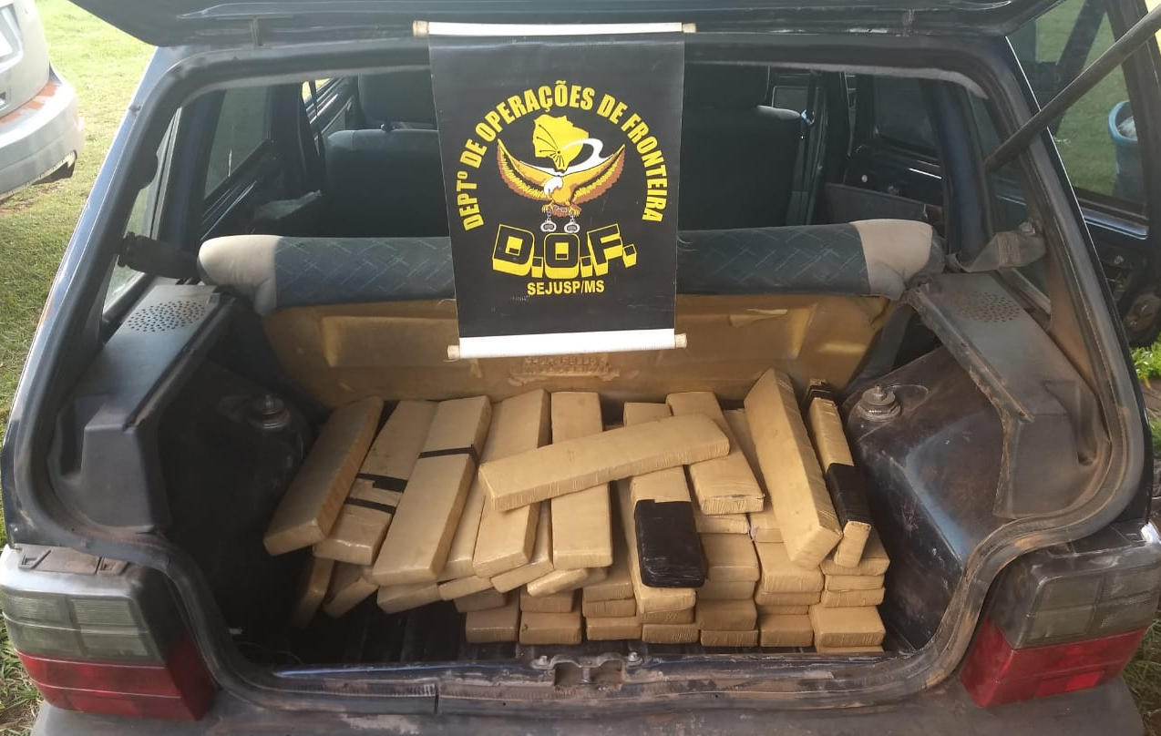 Os militares prenderam os dois ocupantes do veículo e proprietários do entorpecente que seguiam para Palhoça Laguna Carapã (MS), 27 de março – Policiais Militares do Departamento de Operações de Fronteira (DOF) prenderam na noite de ontem, o condutor