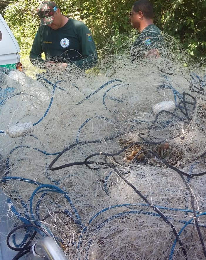 Campo Grande (MS) – Uma das preocupações da Polícia Militar Ambiental relativamente à pesca predatória é o uso de petrechos proibidos com grande poder de depredação de cardumes como as redes de pesca. Durante fiscalização no lago da usina Sérgio