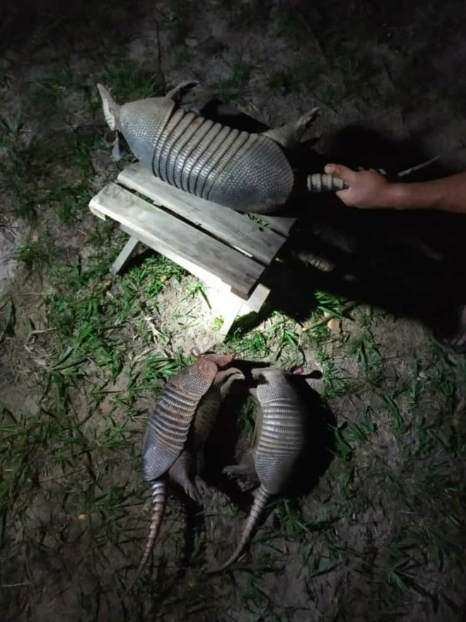 Campo Grande (MS) – A Polícia Militar Ambiental de Campo Grande localizou e autuou hoje (7) um pedreiro por ter postado nas redes sociais a caça de três animais silvestres da espécie Dasypus novemcinctus (tatu-galinha). O caçador foi identificado