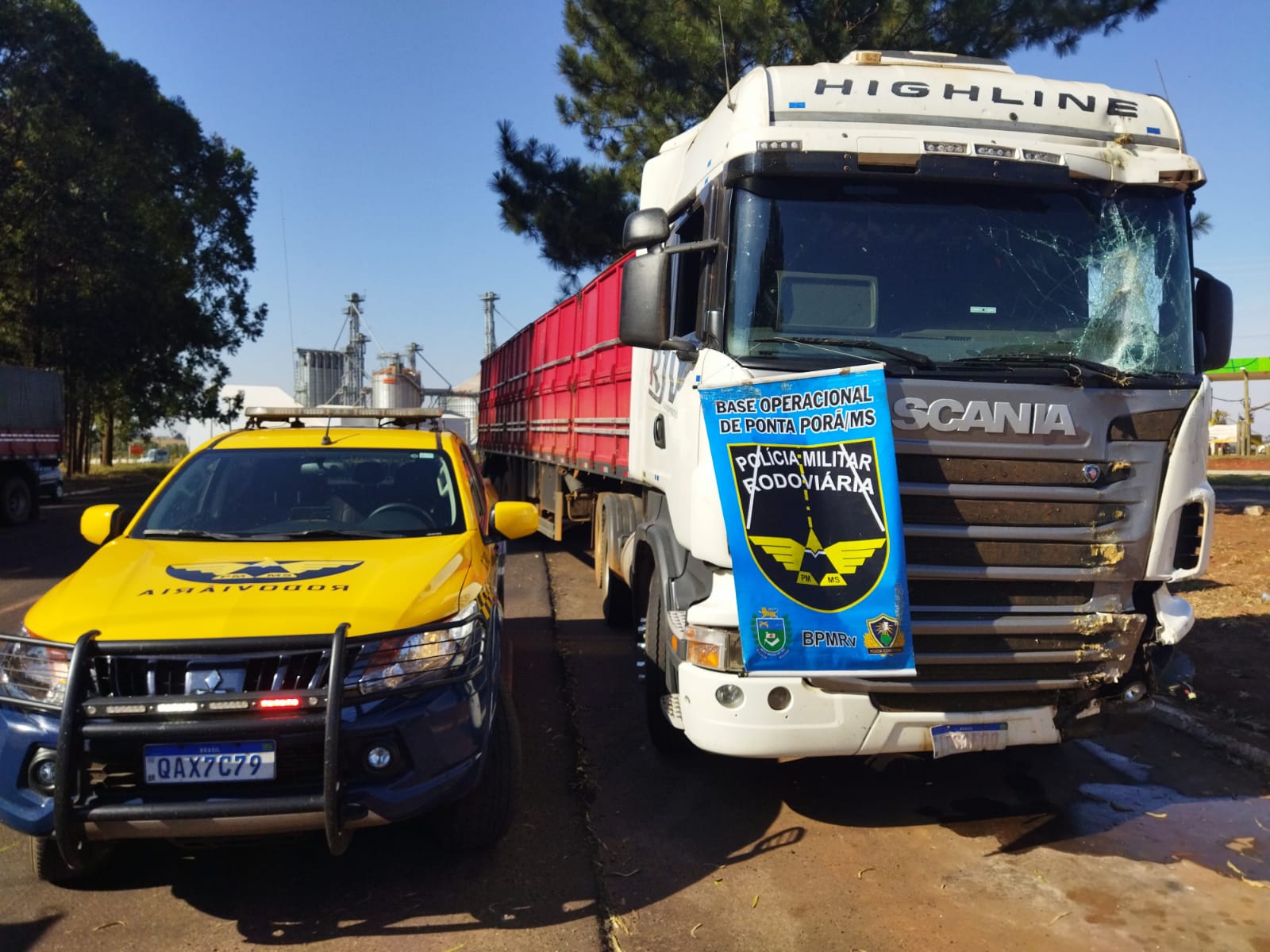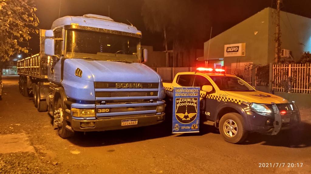 Ponta Porã (MS) – Durante a Operação Hórus, desencadeada pela SEJUSP/MS e pela Secretaria Nacional de Operações Integradas (SEOPI) do Ministério de Justiça e Segurança Pública, a Polícia Militar Rodoviária recuperou um veículo carreta Scania