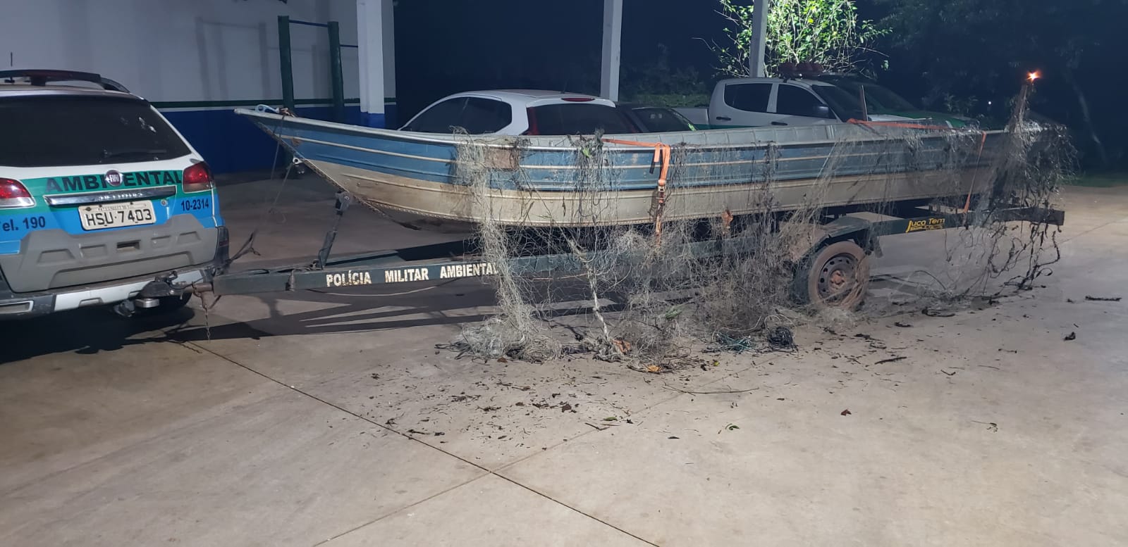 Durante verificação de uma denúncia anônima de pesca predatória, uma equipe da PMA de Dourados deslocou-se até um rancho localizado à margem do Rio Vacaria, no município de Nova Alvorada do Sul. No decorrer da fiscalização, foram encontrados quatro