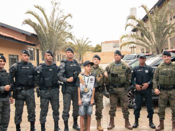 Campo Grande (MS) – Na tarde de hoje, o adolescente Júlio César Figueiredo Costa recebeu uma surpresa. Em comemoração ao seu aniversário de 12 anos, equipes da PMMS fizeram uma visita para ele. Júlio está lutando contra um tumor cerebral desde