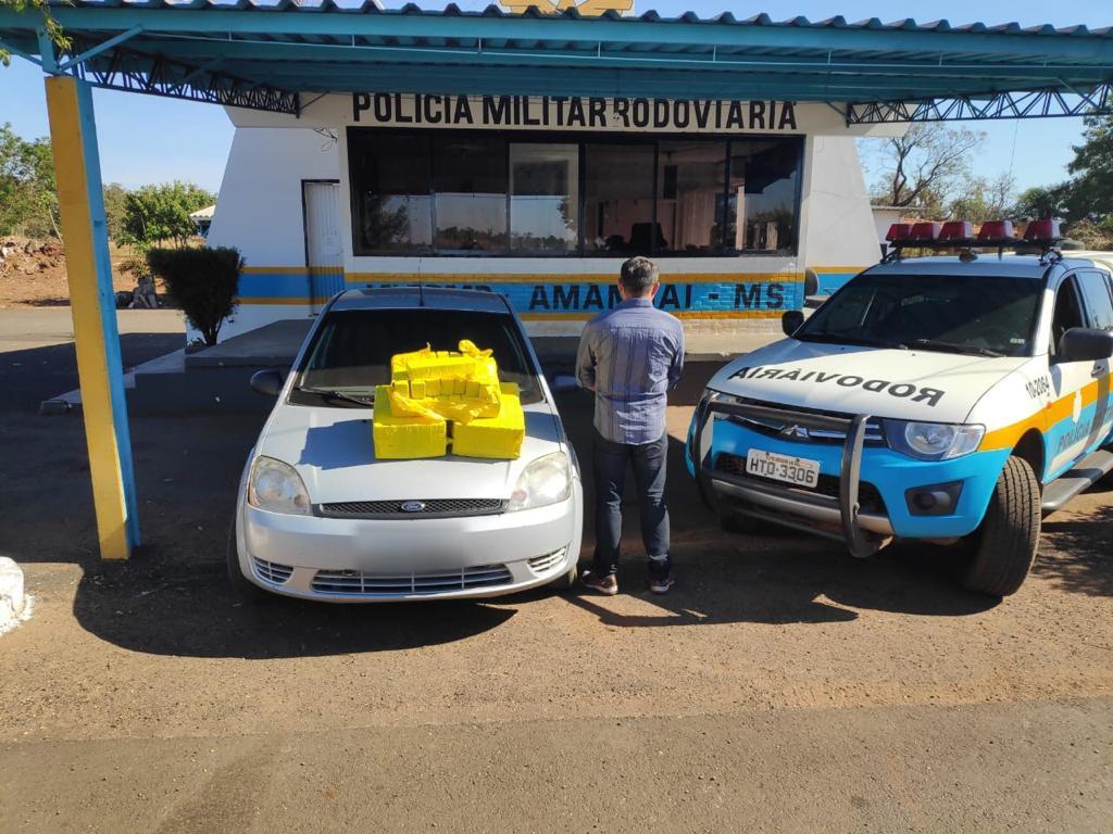 Amambai (MS) – Policiais Militares Rodoviários em fiscalização na rodovia estadual MS 156, por volta das 12h00 desta quarta-feira (10), abordaram o veículo Ford Fiesta com placas de Amambai (MS), conduzido por um homem de 48 anos, que transitava no