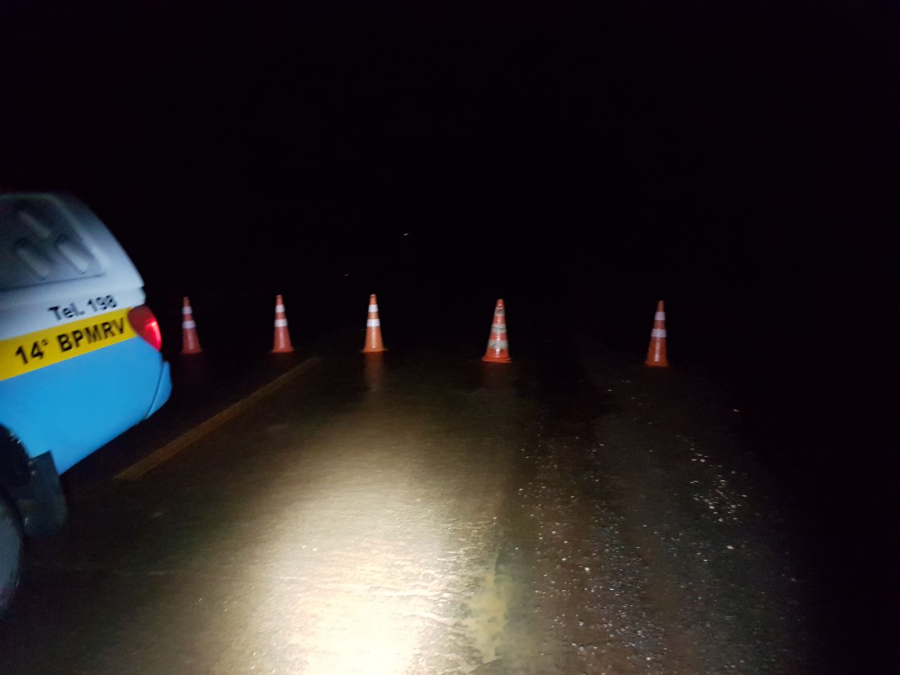 Campo Grande (MS) – Na noite de sábado (23/12), por volta das 00H, a equipe do 14ºBPMRv de Amandina recebeu uma denúncia de que a rodovia MS-141, Km-28 trecho entre Ivinhema a Naviraí havia um buraco que devido a forte chuva desmoronou e necessitava