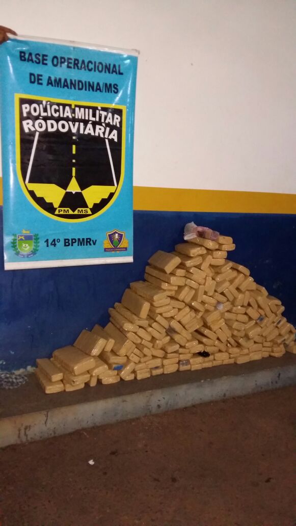 Campo Grande (MS) – A Polícia Militar Rodoviária, através da Base Operacional de Amandina, apreendeu cerca de cento e dezoito quilos de maconha na manhã do dia 24 de março. Um homem foi pelo crime de tráfico de drogas. Em abordagem em um veículo