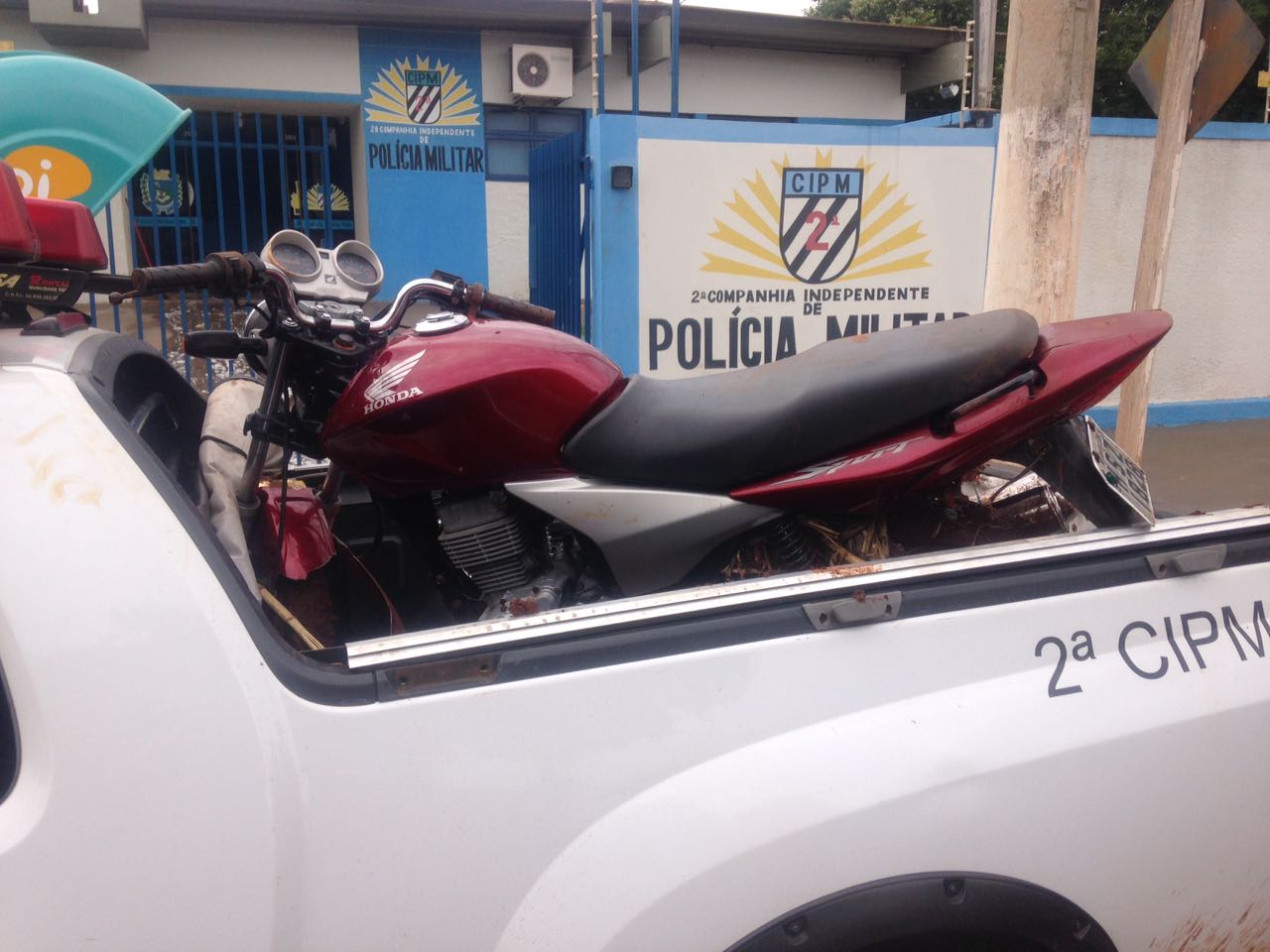 Nova Alvorada do Sul (Ms) – Na noite de domingo (18), a Polícia Militar recebeu uma denuncia via copom (190), na qual o denunciante narrou que duas pessoas estariam empurrando uma motocicleta, em uma estrada vicinal existente nas proximidades do