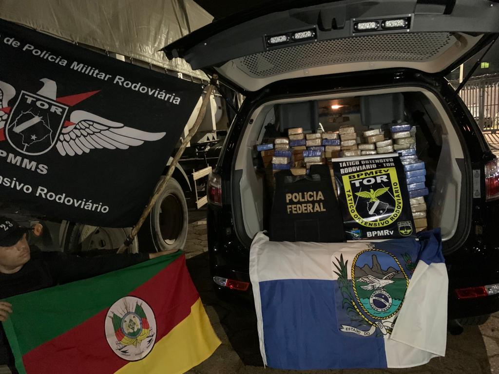 Durante a Operação Hórus, desencadeada pela SEJUSP/MS e pela Secretaria Nacional de Operações Integradas (SEOPI) do Ministério de Justiça e Segurança Pública, a equipe da Sede do Batalhão de Polícia Militar Rodoviária apreendeu mais de 800 quilos