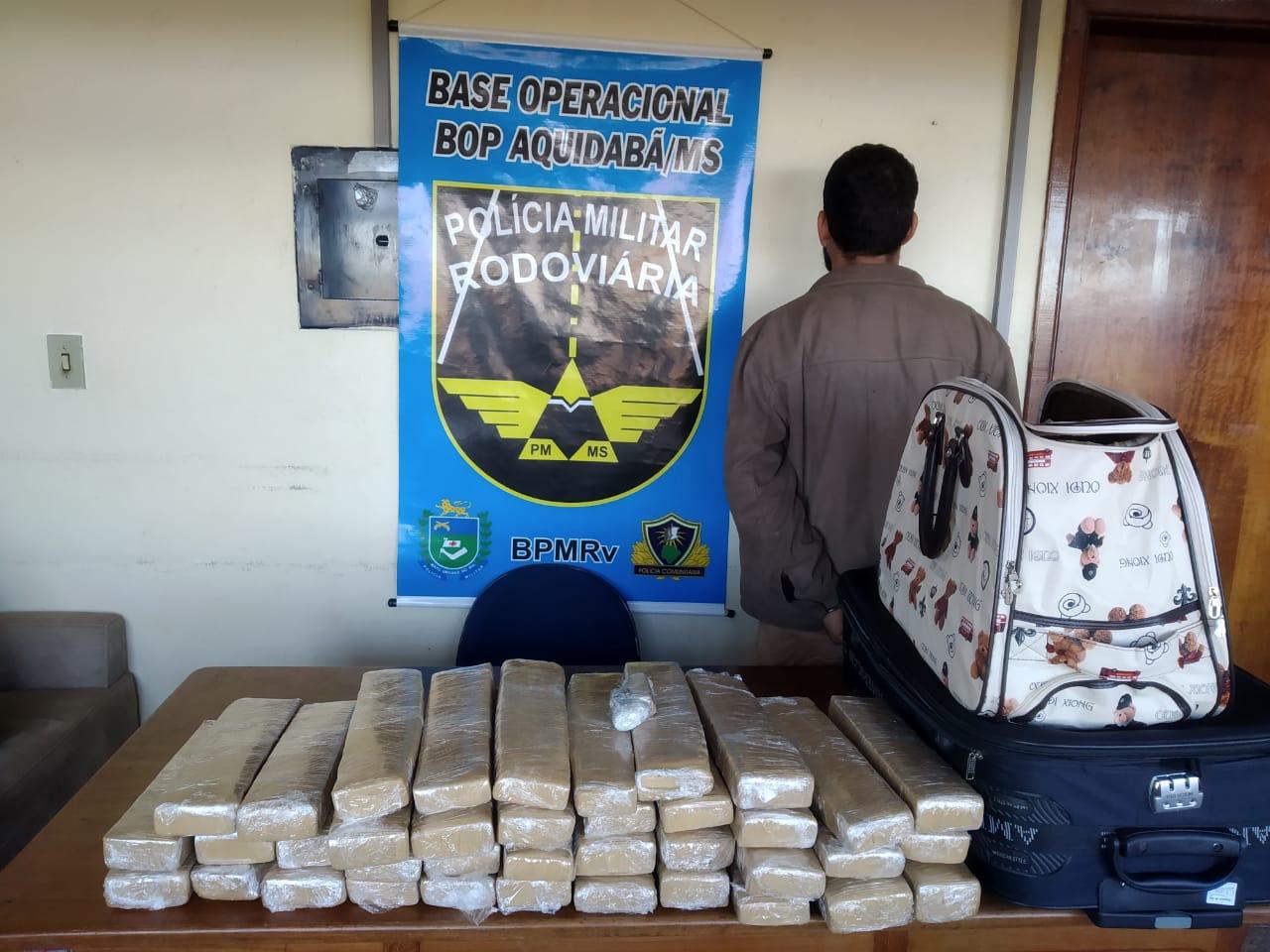 Ponta Porã (MS) – A Polícia Militar Rodoviária (PMR) prendeu um homem transportando 32 quilos de maconha em um ônibus na MS 164, na manhã dessa terça-feira (14/05), em Ponta Porã. A equipe policial militar, em ação de policiamento ostensivo